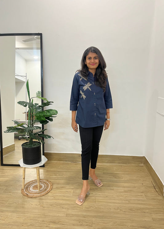 Navy embellished shirt