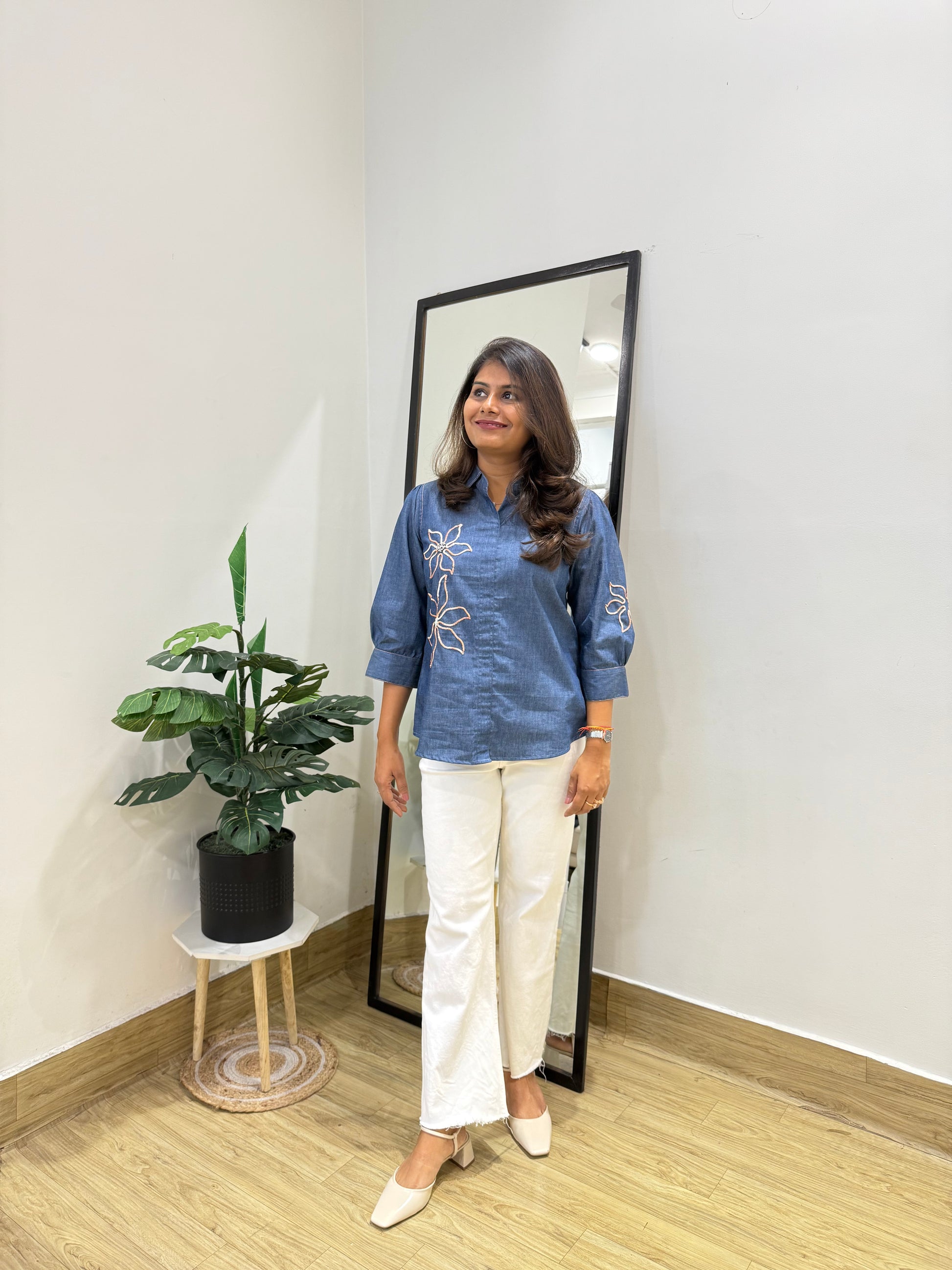Denim embellished shirt